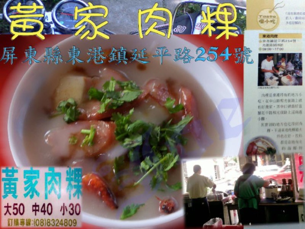 1.標題: [食記] 東港肉粿全攻略心得 (城隍廟斜對面肉粿,很好認,一眼就能看到"黃家肉粿"的扛棒了!)